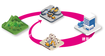 群馬県みどり市を拠点に、建物や道路、橋などの社会インフラに欠かせない砕石を製造しています。自然の恵みを受けて製品を生み出す砕石業は、環境や生態系に与える影響が大きい産業の一つです。だからこそ当社では、地域の自然資本の保全および持続可能な利用を目指し、リサイクル事業や砕石跡地の緑化に力を注いでいます。これからも、地域の明るい未来のために、環境保全と経済活動を両立しながら循環型社会の実現に貢献していきます。